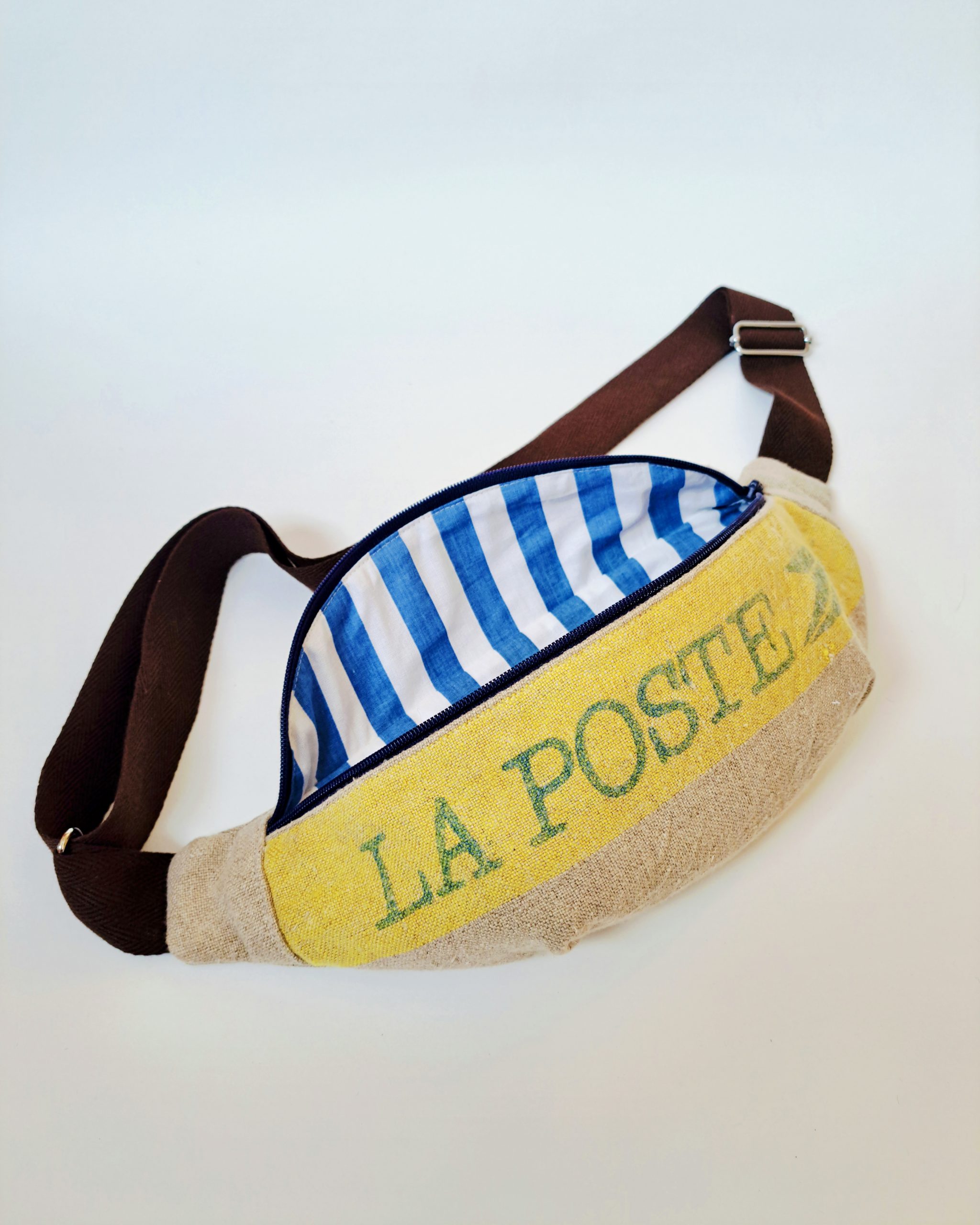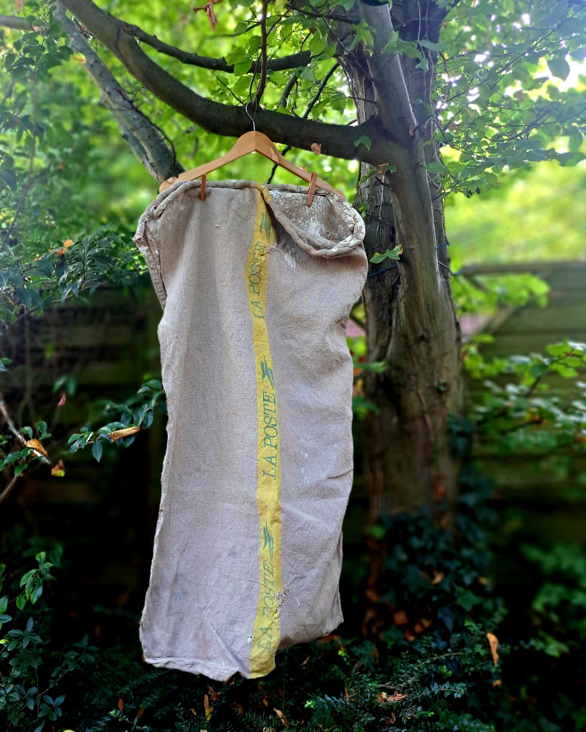 Tasje La Poste is gemaakt uit een stuk van een zeer doorleefde Franse postzak, gevonden op La Grande Brocante in Deventer afgelopen zomer.